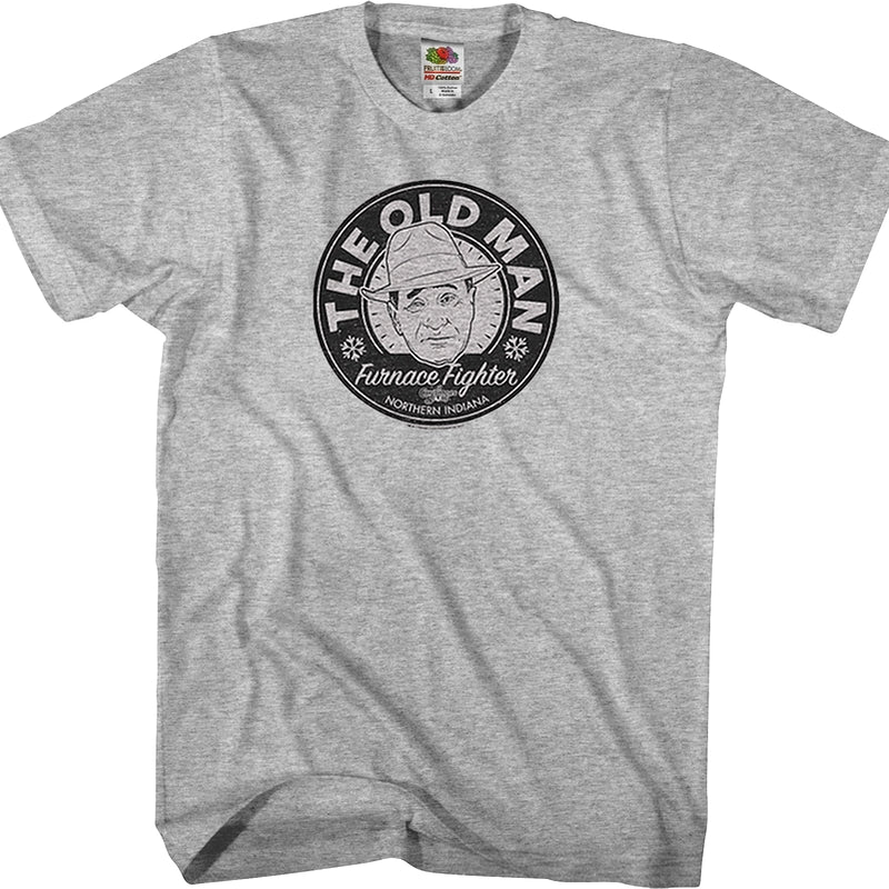 Throughout the 1983 Christmas classic movie A Christmas Story the narrator, who is voiced by an adult version of Ralphie Parker, refers to his dad only as "The Old Man". During the movie his dad fights a never ending battle with the furnace. Thus the shirt refers to him as a Furnace Fighter from Northern Indiana.