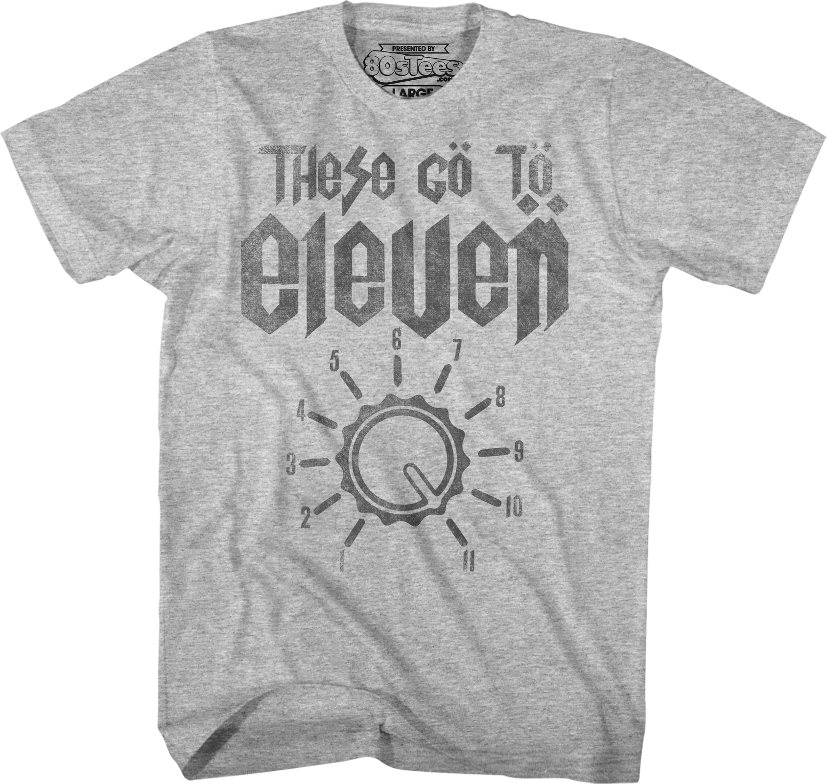 After Nigel explained that Spinal Tap goes all the way up to eleven, Marty asked why Spinal Tap doesn't just their amplifiers go to ten and make ten a little louder. Nigel answered with the quote that appears on this t-shirt, "These Go To Eleven".