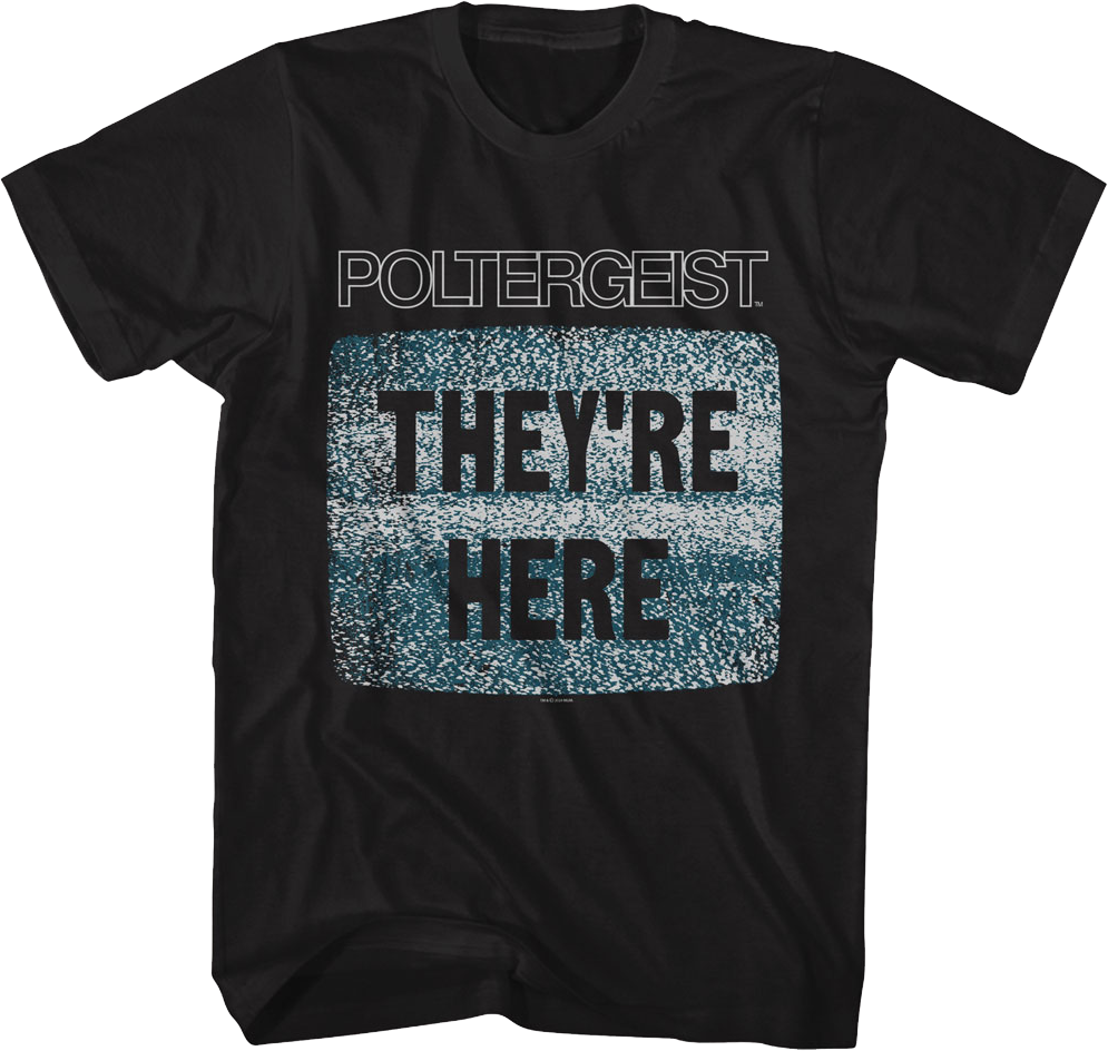 This Poltergeist t-shirt shows TV static and the iconic quote "They're Here."