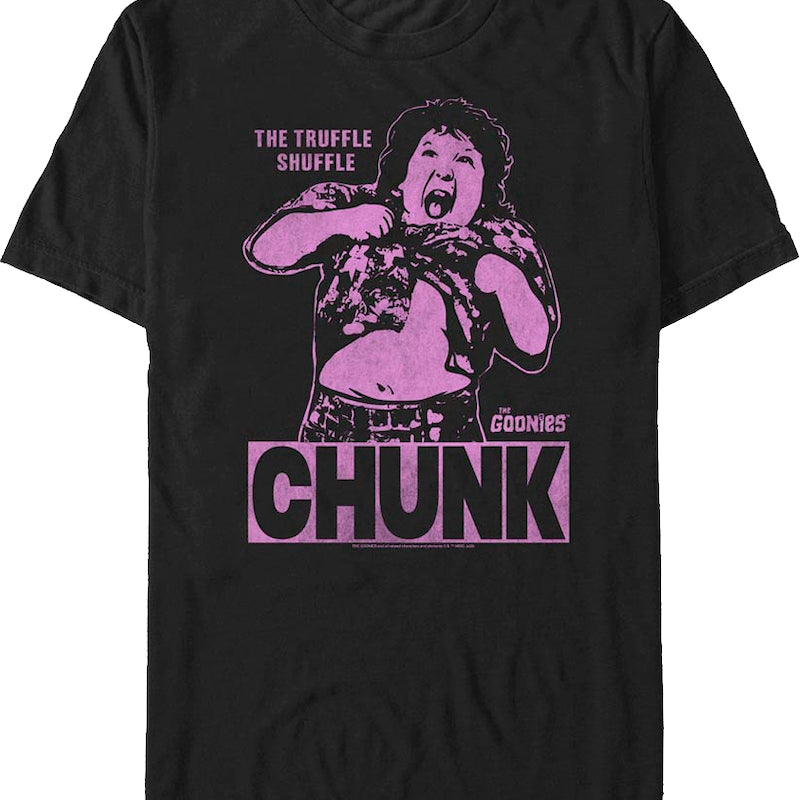 Chunk was one member of a group of friends from the goon docks. When Chunk tried to get into his friend Mikey's house, Chunk was told he could not enter the house until he did the truffle shuffle, a performance that Chunk reluctantly did when he lifted his shirt and shook his belly.