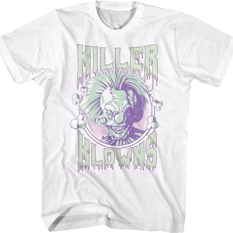 This Killer Klowns From Outer Space t-shirt features an image of Margori surrounded by popcorn.