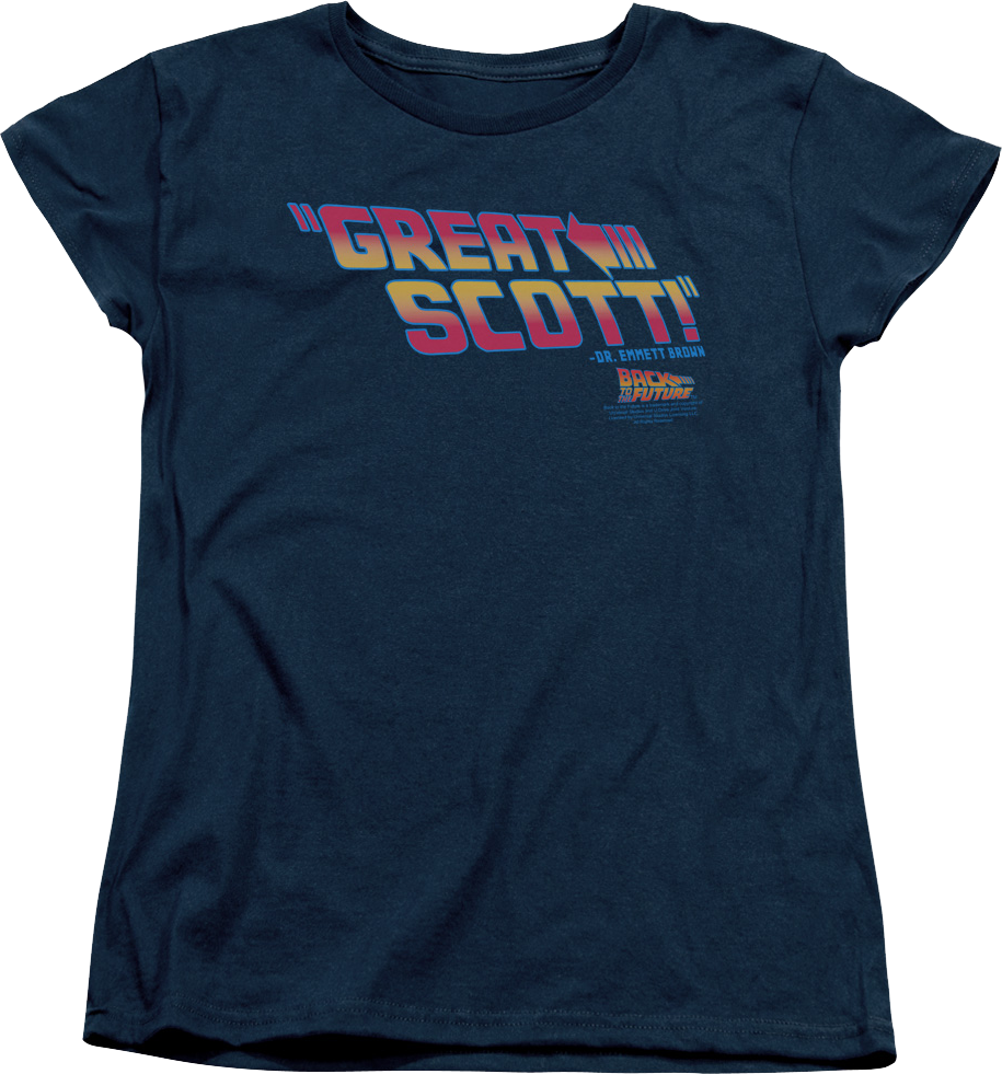 Let everyone know you are a fan of the 1985 classic starring Michael J. Fox and Christopher Lloyd when you wear this Womens Back To The Future Great Scott Shirt.