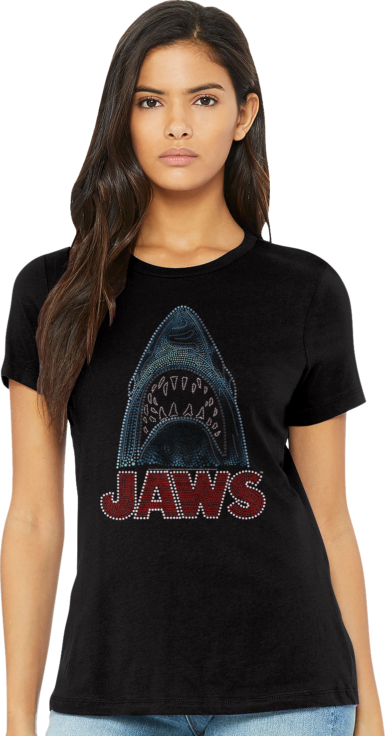 For any fan of Jaws, this Womens Bedazzled Jaws Shirt is a must have!