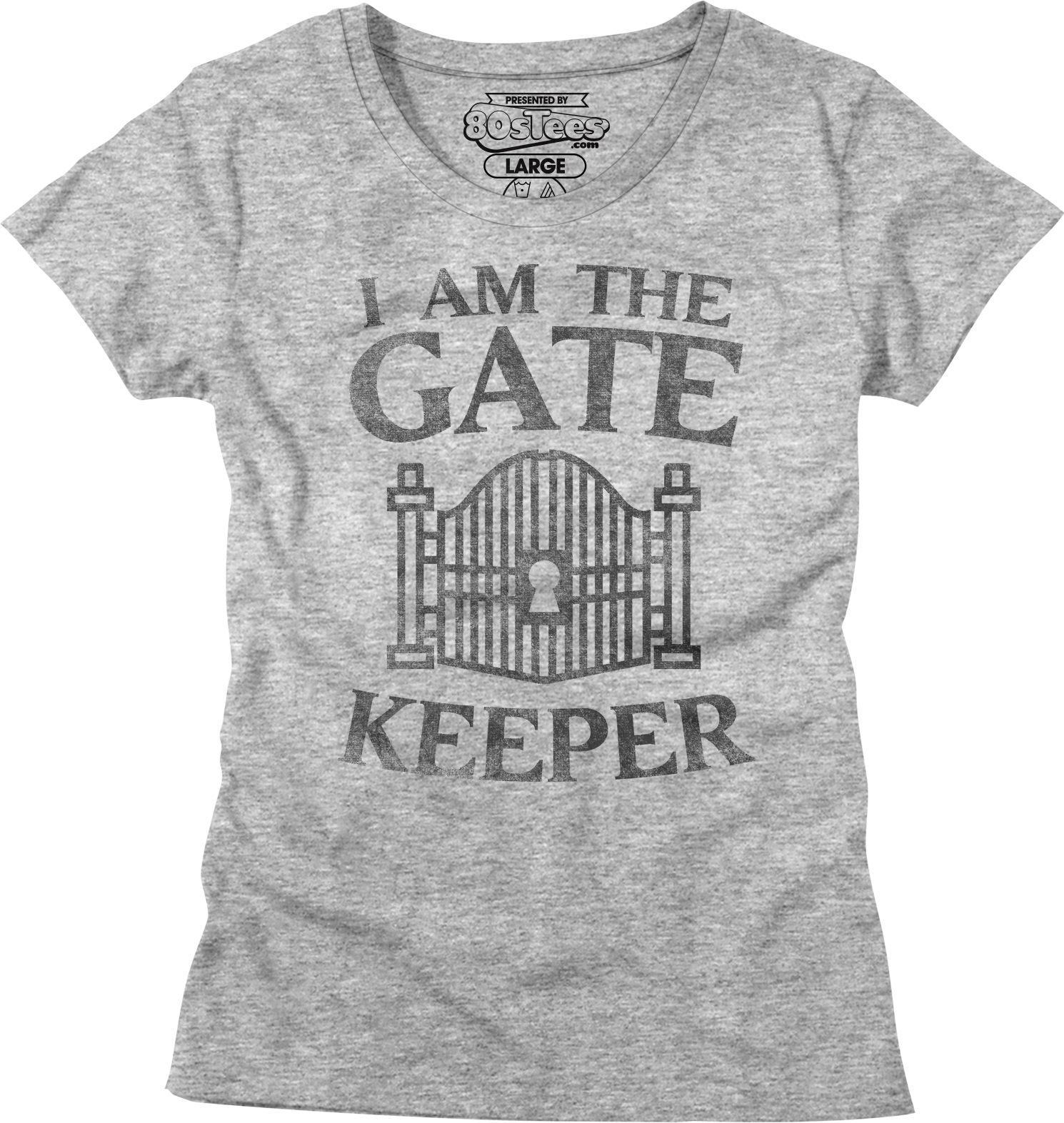 This womens 80sTees.com exclusive Ghostbusters shirt shows a locked gate, and the shirt reads I Am The Gatekeeper.